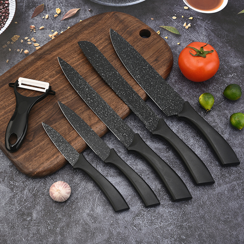 Juego de cuchillos de seis piezas con piedra de arroz y tinta con mango curvonegro